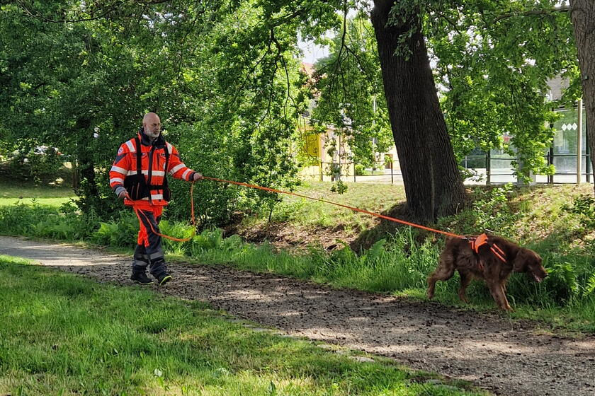 „Ein Mantrailer muss nicht nur zuverlässig arbeiten, sondern auch in stressigen Einsatzsituationen fokussiert und führbar bleiben – das gelingt nur durch regelmäßiges, realitätsnahes Training“, betont Heidi Stensel, Rettungshundestaffelleiterin der Johanniter.