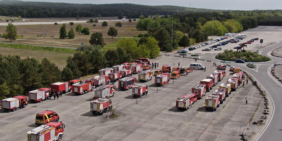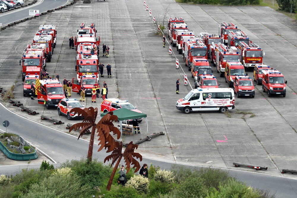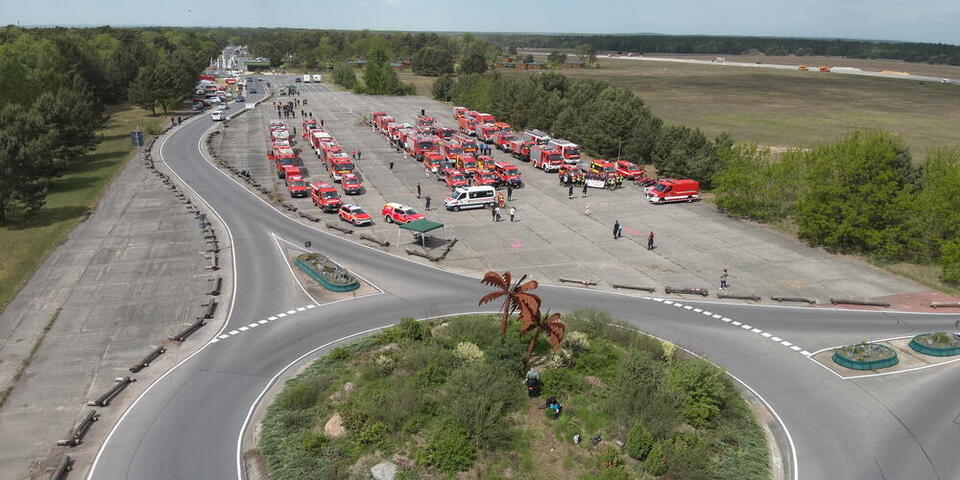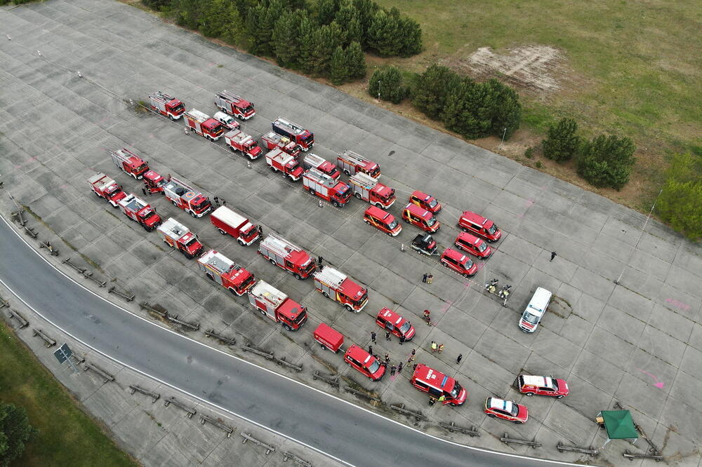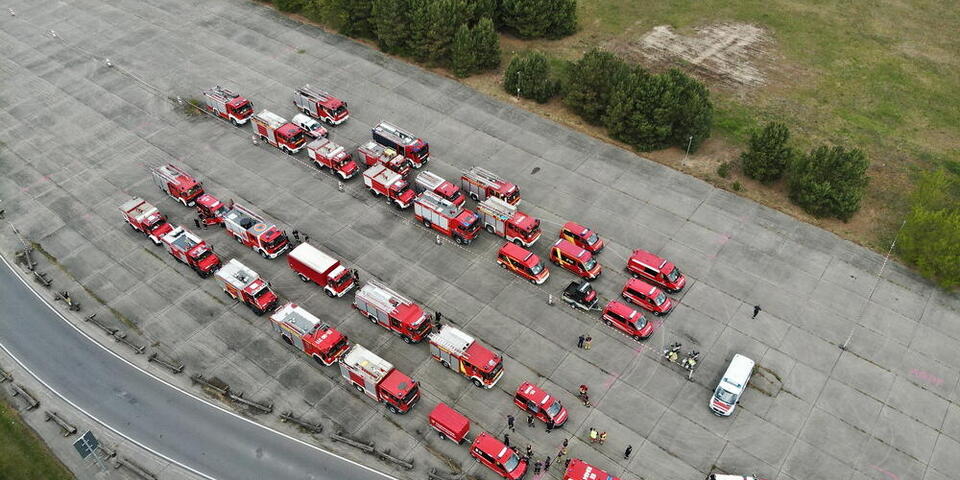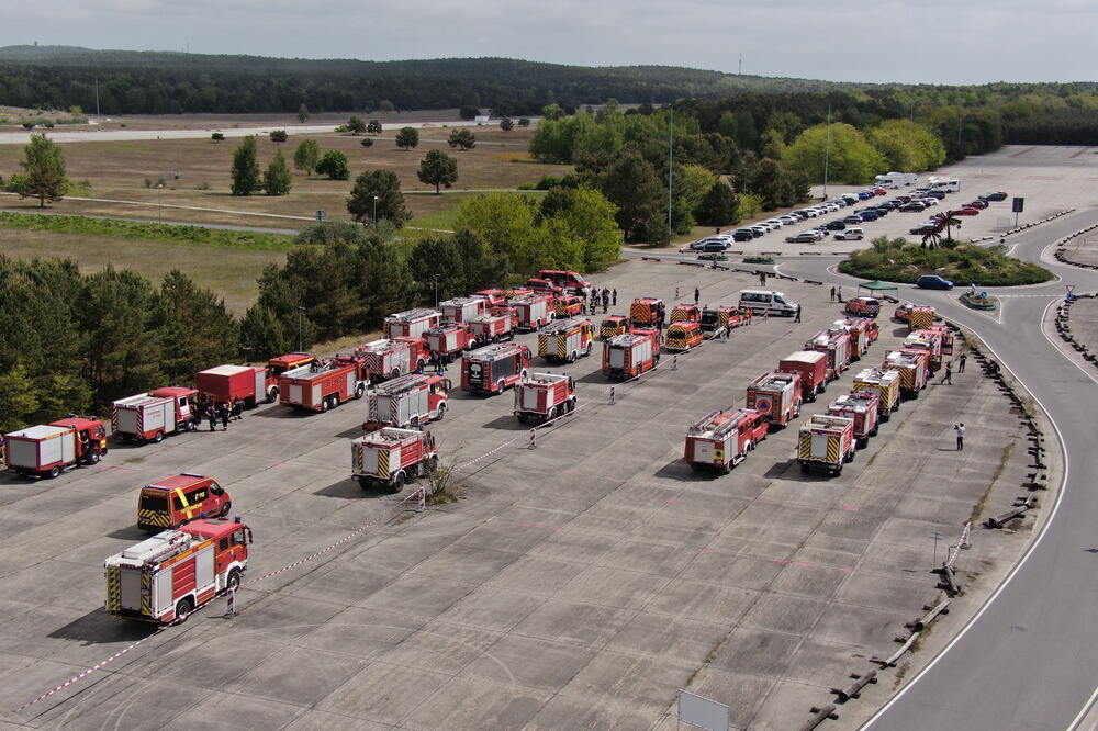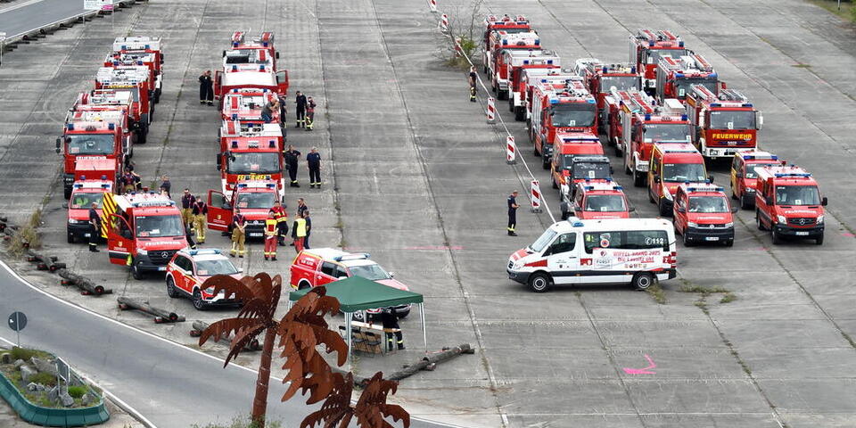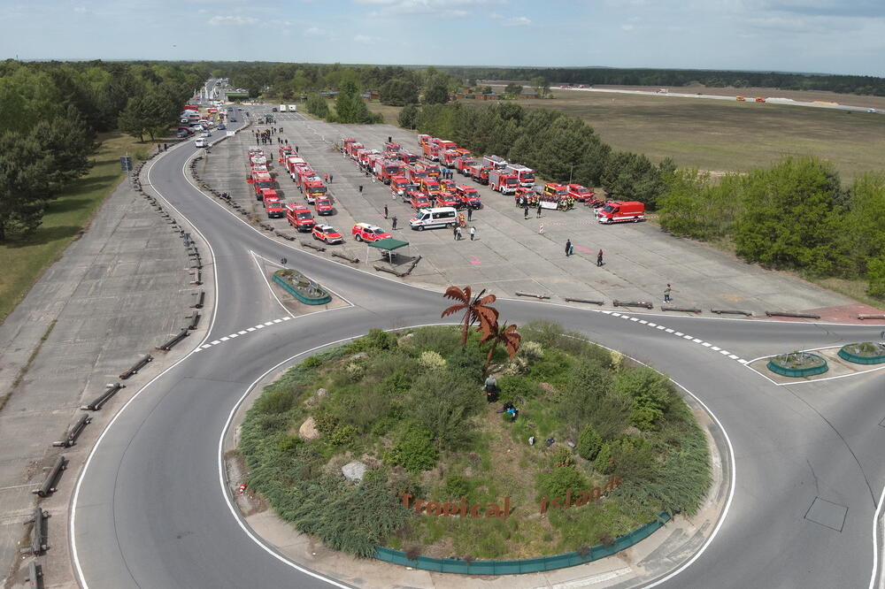- Tropical Islands in Brand (LDS): Das Areal diente als Bereitstellungsraum für etwa 100 Einsatzfahrzeuge – hier übten die Brandschutzeinheiten die geordnete Anfahrt, das Fahren im Verband, die taktische Aufstellung sowie die Einsatzlogistik unter realitätsnahen Bedingungen.