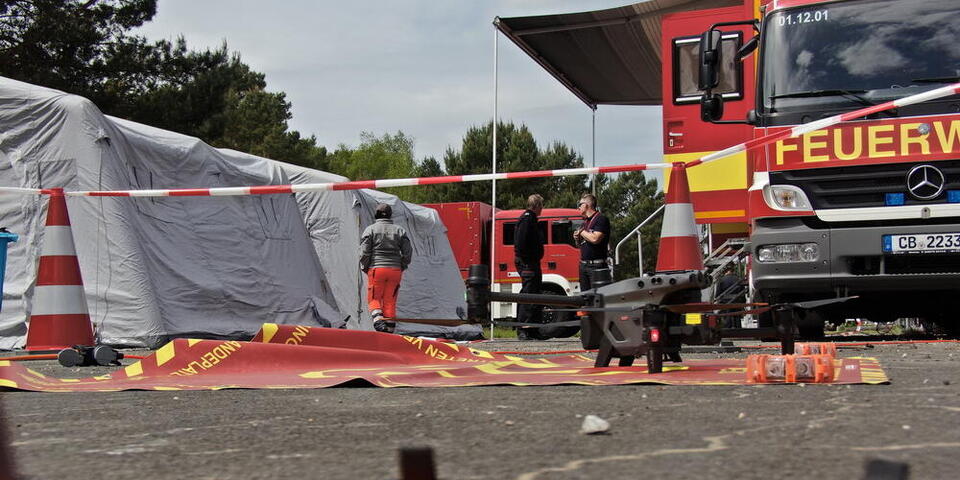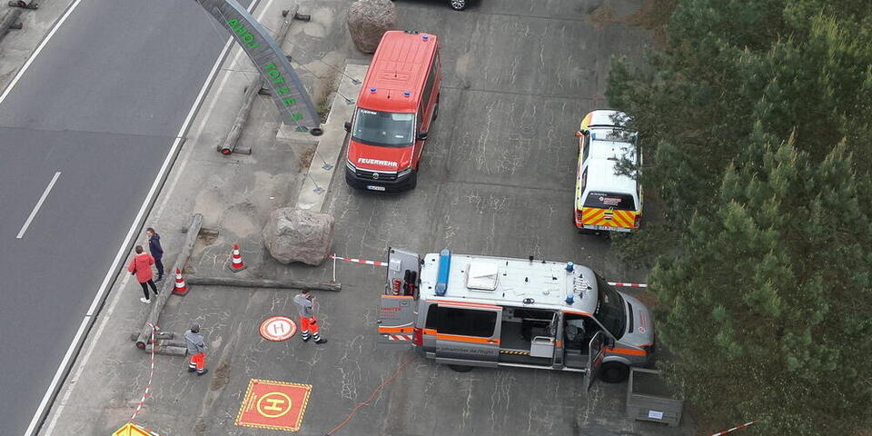 Die Johanniter Südbrandenburg unterstützten mit ihrer Schnelleinsatzgruppe F.L.I.G.H.T. die Führungsunterstützung vor Ort mit Live-Luftbildern – eine wertvolle Ergänzung für die Lageeinschätzung und Einsatzkoordination im Gelände.
