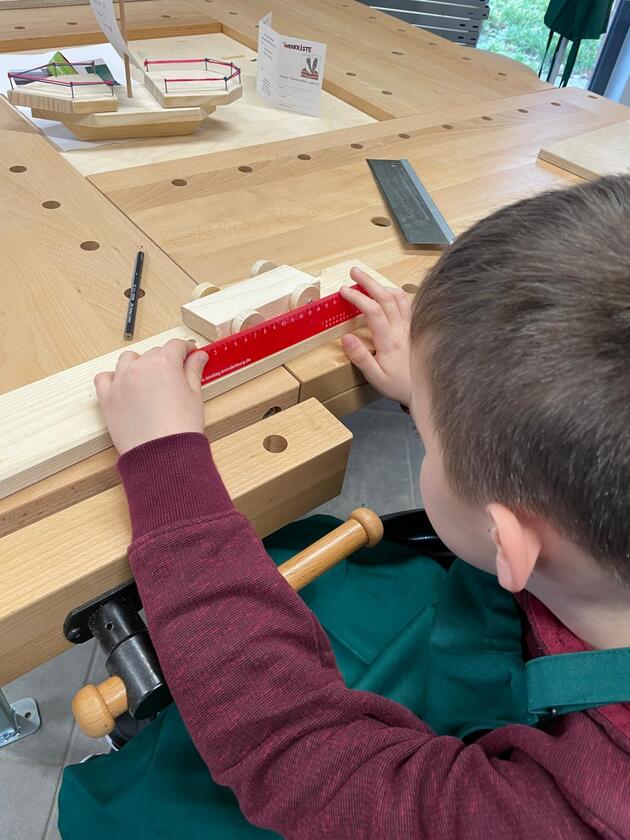 Wie viele Arbeitsplätze gibt es in der Werkstatt? Insgesamt gibt es 6 Arbeitsplätze. Je nach Alter, Ressourcen, Vorkenntnissen & Unterstützungsbedarf der Kinder sind die Plätze variabel. Es können sich auch zwei Kinder einen Arbeitsplatz teilen. Bei größeren Gruppen kann die Werkstatt gestaffelt genutzt werden: Eine Gruppe arbeitet in der Werkstatt, während die andere Gruppe den Spielplatz am Kinderhaus nutzt.