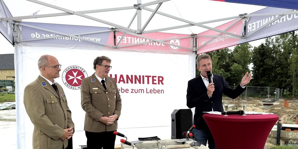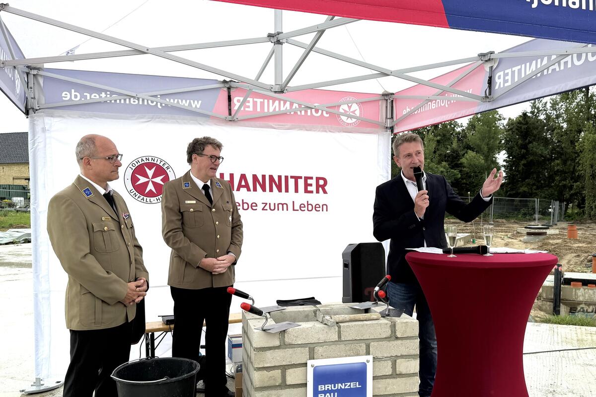 Wolfgang Geppert bedankte sich, dass die Johanniter die Trägerschaft und auch den Bau der Einrichtung übernommen haben. Der Ort Marwitz wachse seit 10 Jahren enorm und die Kitaplätze, die hier geschaffen werden, werden dringend benötigt. „Die heutige Grundsteinlegung ist daher ein wichtiger Meilenstein und ein besonderer Moment für unsere Gemeinde.“ Der stellvertretende Ortsvorsteher Nils Grothe hob in seinem Grußwort hervor, dass sich engagierte Vereine und der Ortsbeirat bereits darauf freuen, sich mit dem Kita-Team zu vernetzen, um so gemeinsam Aktivitäten für den Ort und für die Kita-Kinder zu schaffen. Beide wünschten den Bauherren einen reibungslosen Ablauf für die weiteren Bauarbeiten, so dass die Einrichtung planmäßig Anfang 2027 eröffnen könne.