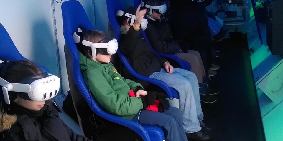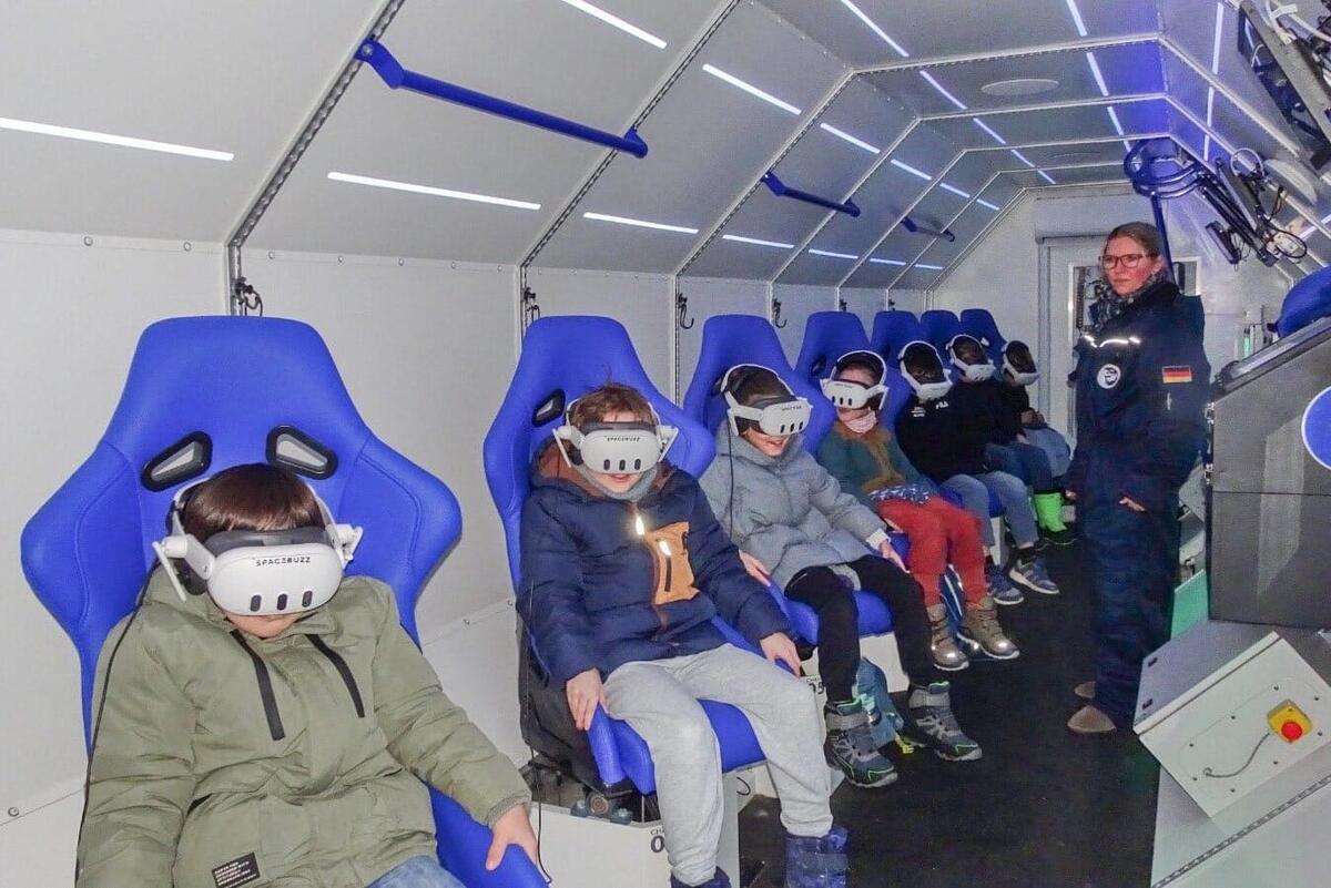 Ausgestattet mit VR-Brillen und in beweglichen Sitzen erlebten die Kinder einen virtuellen Raumflug. Aus der Perspektive von Astronautinnen und Astronauten umkreisten sie unseren Heimatplaneten. Dabei vertieften die Kinder während des "Fluges" die erlernten und spannenden Themen über die Erde, das Weltall und die Raumfahrt. Dieses Erlebnis hat das Thema Weltraum für Kinder wunderbar erlebbar gemacht.