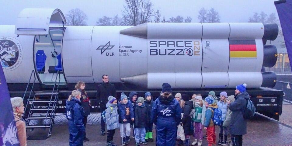 Ein außergewöhnliches Bildungserlebnis wartete heute auf die Schülerinnen und Schüler der Johanniter-Kinderakademie. Der innovative SPACEBUZZ ONE, ein begehbarer High-Tech-Truck mit modernster VR-Technologie, machte Station in Eberswalde. Möglich wurde dieser Tag durch die erfolgreiche Teilnahme am Wettbewerb „Zeig mir Dein Universum" der Deutschen Raumfahrtagentur im DLR.