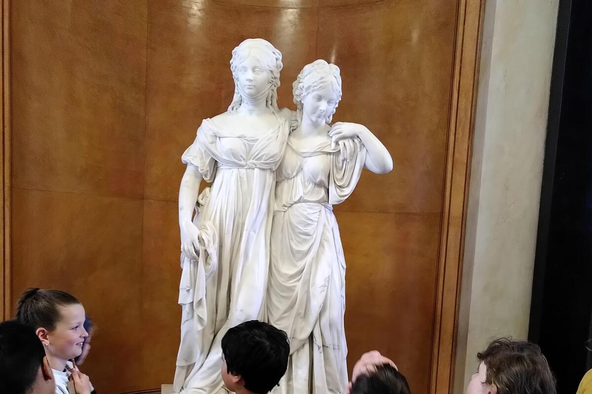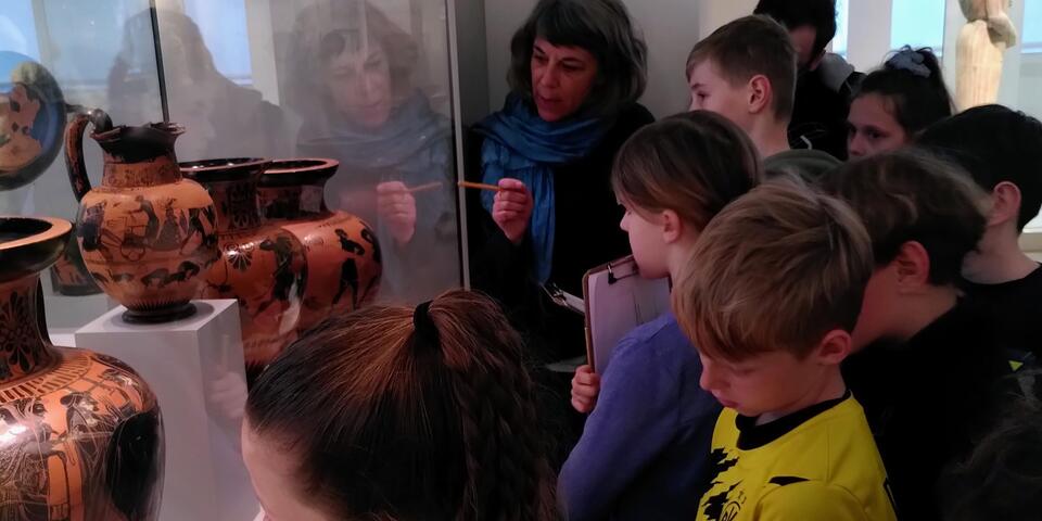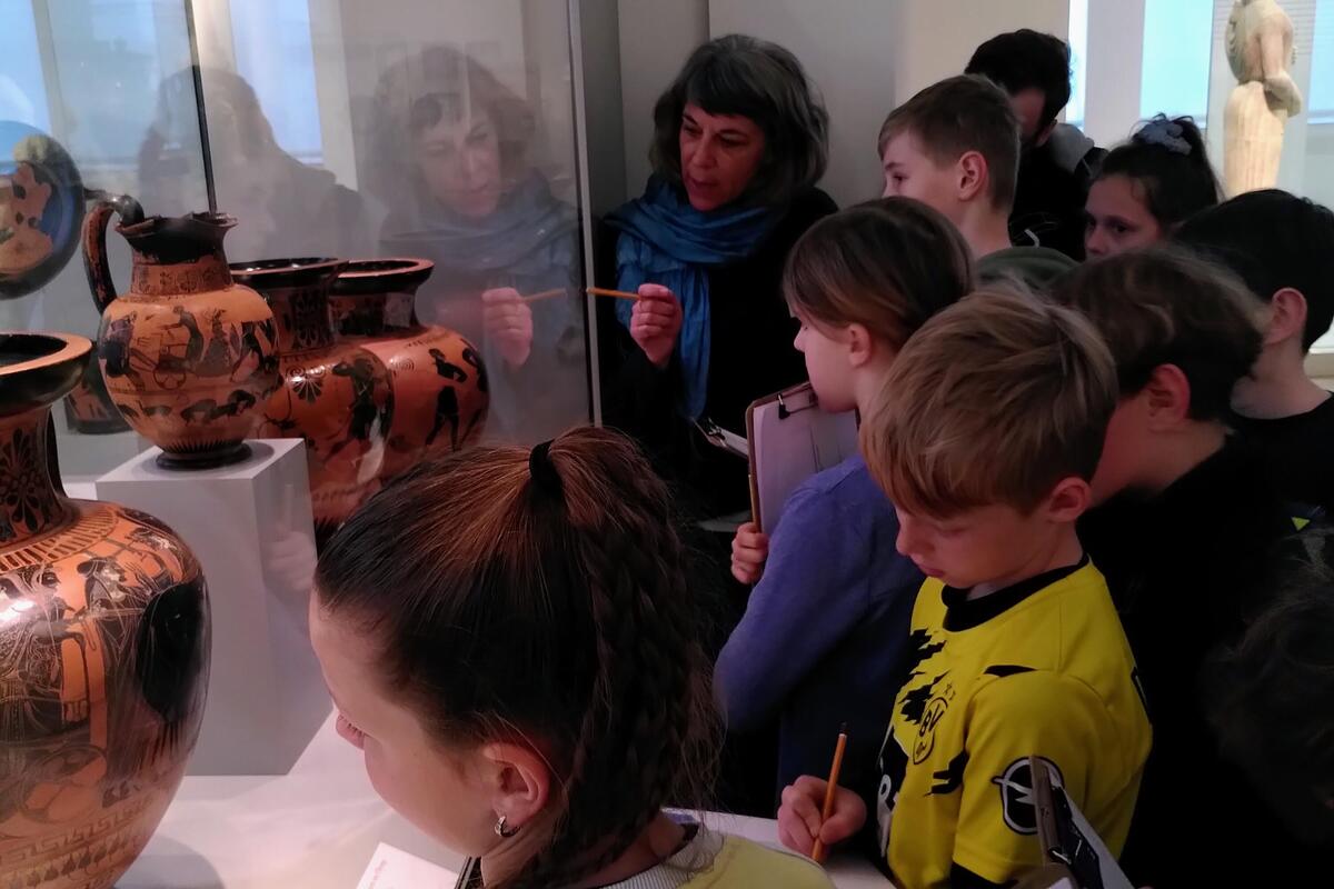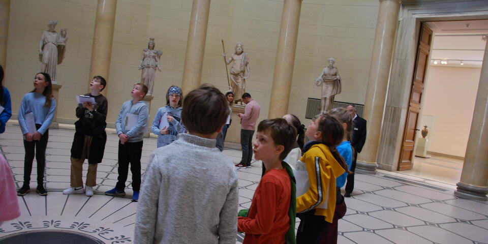„Ich fand den Ausflug super, weil wir zwei Museen besuchten und ein kleines Büchlein bastelten. Als allererstes waren wir im Alten Museum. Dort waren sehr viele Amphoren und vor allen Dingen sehr schöne Statuen. Anschließend waren wir in der Alten Nationalgalerie. Auch dort gab es sehr schöne Dinge, wie zum Beispiel selbst gemalte Bilder von alten Künstlern.“ So schreibt Alma über den Projekttag, den die vierten Klassen der Kinderakademie auf der Museumsinsel verbringen konnten. Die Exkursion wurde über die Initiative „Weg und hin! Museen erweitern ihre Wirkungsbereiche“ der staatlichen Museen zu Berlin durchgeführt und finanziert.