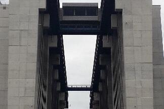 An den Hebewerken angelangt, hatten wir noch genügend Zeit, uns die umfangreiche multimediale Ausstellung zur Geschichte der Bauwerke anzuschauen und zum Anlegeplatz des Fahrgastschiffes „Freiherr von Münchhausen“ zu schlendern. Die kommenden neunzig Minuten verbrachten wir an Bord. Nach einer kurzen Fahrt auf dem Finowkanal ließen wir uns zuerst im neuen Hebewerk hinauf und daraufhin im alten Hebewerk wieder hinunterschleusen. Ganze sechsunddreißig Meter! Nicht nur dieser Höhenunterschied, sondern auch viele interessante Informationen zu Bau, Technik und anderen imposanten Hebewerken der Welt beeindruckten uns immens. Manch Schüler konnte zudem den Vorrat an Süßigkeiten kaum fassen, der an Bord recht günstig zum Verkauf angeboten wurde. Und auch die dortige Verkaufsdame konnte wohl kaum ihr Glück fassen, an diesem Tag den Umsatz einer Woche verbuchen zu können.