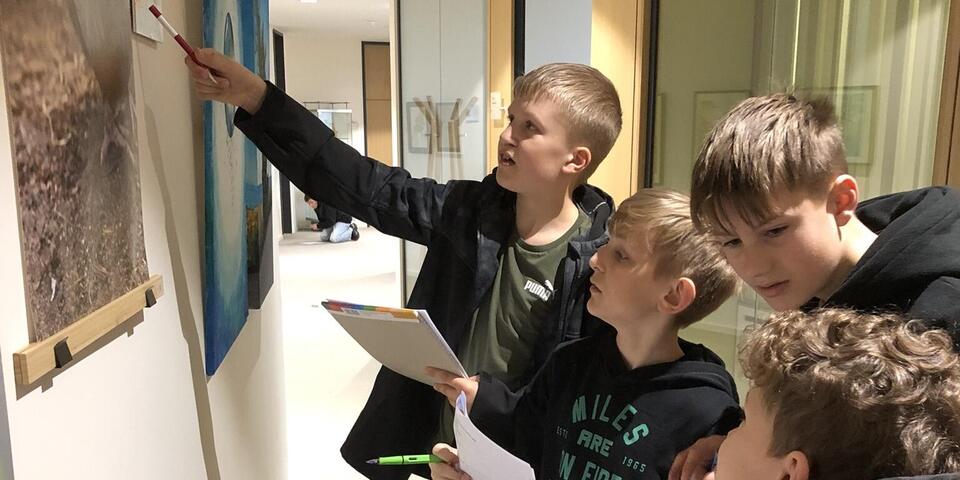 Solche und weitere Forscheraufträge bearbeiteten die Schülerinnen und Schüler der drei sechsten Klassen bei ihren Besuchen in der Kleinen Galerie der Stadt Eberswalde. Eine abwechslungsreiche Ausstellung regionaler Künstler aus dem Verein „Die Mühle e.V.“ bot den Kindern viele Möglichkeiten für künstlerische Entdeckungen.