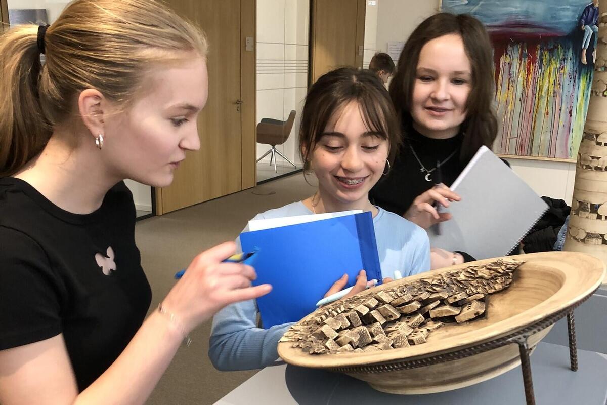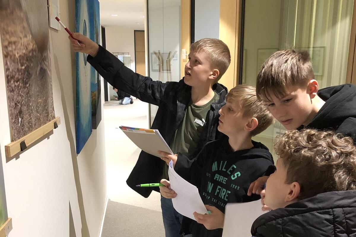 Die Vielfalt der gezeigten Arbeiten und ihre Regionalität ermöglichte jeder und jedem etwas zu entdecken, was sie/ihn berührte. Wir fanden so viele Momente zum Gespräch und Gedankenaustausch. Eine Schulstunde war schnell vorbei. Die meisten Kinder hätten gern noch mehr Zeit in der Ausstellung verbracht.