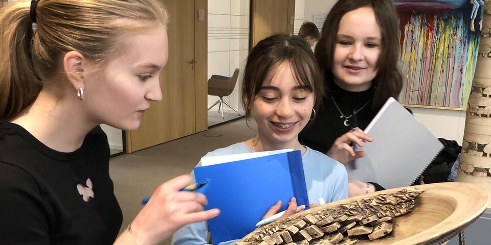 Die Klassen 6a, 6b und 6c und ihre Kunstlehrerin Ingrid Ulandowski