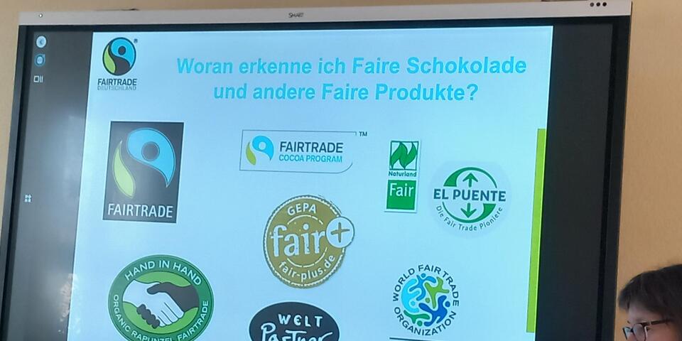 Die Jungen und Mädchen sahen und hörten vom fairen und unfairen Handel in der Welt. Durch Spiele und verschiedene Filmsequenzen erfuhren die Kinder von den Lebens- und Arbeitsbedingungen der Kakaobauern der Elfenbeinküste in Afrika.