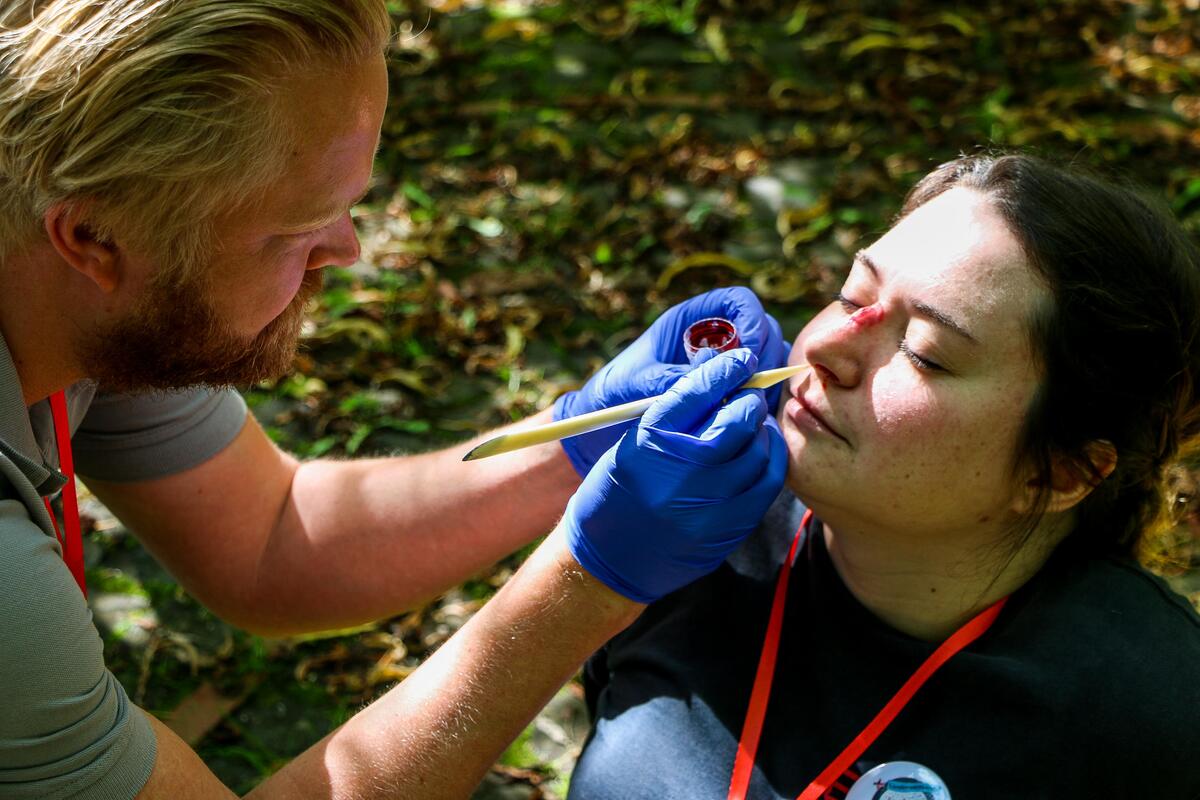 Der Wettkampf startete zunächst mit einem schriftlichen Theorietest, dann stellten sich die Teilnehmenden den praktischen Herausforderungen wie Trageparcours, der Herz-Lungen-Wiederbelebung oder realistischen Unfallszenarien, die alle rund um das Thema „Jahrmarkt“ gestaltet waren und den Teilnehmenden ein umfangreiches medizinisches Wissen abverlangten.