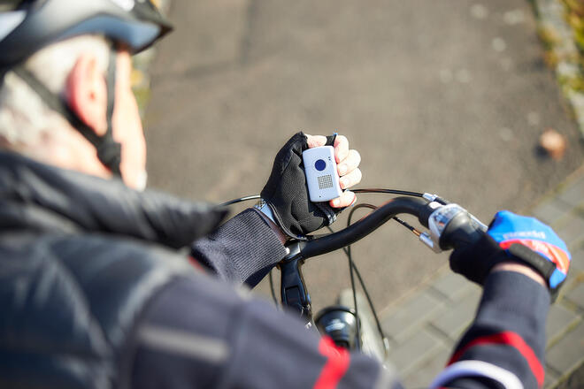 Der Johanniter-Kombinotruf sorgt für Sicherheit außerhalb der eigenen vier Wände. Mit der größeren Reichweite kann Hilfe unterwegs etwa beim Einkaufen angefordert werden.