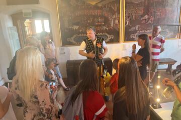 Zum Abschluss des „Together“-Ferienprogrammes geht es hoch hinaus. Die Waldburg thront in 772 Metern Höhe auf einem kegelförmigen Hügel, die Aussichtsplattform auf dem Dach des Gebäudes gibt den Blick auf Wälder, Felder und Dörfer frei. Bis dorthin sind es zahlreiche Stufen, die durch getäfelte Säle, eine Kapelle und lange Gänge führen. Max Haller, der Betreiber von Schloss Waldburg, nimmt die „Together“-Gruppe dorthin mit. Ehemalige Ritter schauen, als Portrait konserviert, ernst von mittelalterlichen Mauern herab. „Warum lächelt denn keiner der Portraitierten?“, möchte der Betreiber wissen. Kinder überlegen, lachen überrascht als sie die Antwort erfahren: Zu dieser Zeit lies die Zahnhygiene zu wünschen übrig – mit Folgen für das optische Erscheinungsbild. In anderen Räumen wird opulenter Schmuck bewundert und Ritterrüstungen Probe getragen. „Ganz schön schwer“, resümiert ein Junge im Grundschulalter, der sich später erst schüchtern, dann voller Stolz zum Ritter schlagen lässt. „Wie viel Arbeit hier drin steckt“, sagt ein Jugendlicher anerkennend, fährt mit der Hand über einen kunstvoll geschnitzten Holzschrank auf dem Weg zur Kapelle. Dort finden jährlich einige Hochzeiten statt, erklärt Haller, zuletzt seien aber Geisterjäger vor Ort gewesen. Kinderaugen leuchten, Gruselgeschichten in alten Gemäuern ist ganz nach ihrem Geschmack. Später kann das damalige Leben erprobt werden – zumindest in Form der Bekleidung. Kleine Prinzen hüpfen über den Hof, Prinzessinnen im selben Alter präsentieren selig ihre Roben und Diademe, Hofbewohner*innen greifen belustigt zum Tamburin. „Das macht so viel Spaß“, freut sich eine Ukrainerin, „vielen Dank, für diese unterhaltsame Reise in die Ritterwelt!“. „Vielen Dank, für alles!“, ergänzt eine andere Ukrainerin, die eine kurze Ansprache hält. „Ohne Ihren Einsatz wäre uns dieses tolle Ferienprogramm nicht möglich gewesen“, lobt sie das „Together“-Team der Johanniter-Unfall-Hilfe e.V. Positive Kindheitsmomente- und Erinnerungen zu schenken – ein Ziel des „Together“-Projektes – scheint erfüllt.