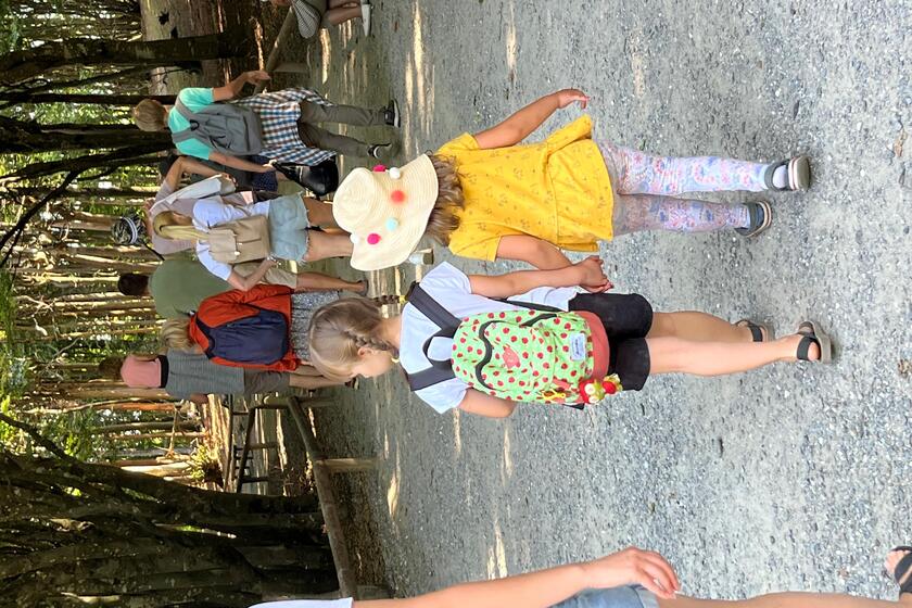 Die Morgensonne hüllt die Reisegruppe am Ravensburger Bahnhof in warmes Licht. Etwa 15 Kinder und Jugendliche plus Begleitpersonen nehmen am Ausflug teil, kleine Rucksäcke mit Proviant auf dem Rücken. Bereits bei Ankunft am Affenberg ist die Freude groß, die zahlreichen auf Dächern brütenden und über das Areal kreisenden Storchenpaare werden bewundert. „In der Ukraine gelten Storche als Glücksbringer“ sagt eine Mutter lächelnd. Nach Einlass führt der Weg vorbei an einem von Schilf umringten, tiefblauen Weiher zu dem 20ha großen umzäunten Waldstück, das etwa 200 Berberaffen beherbergt. „Bitte alle Gegenstände gut in Taschen und Rucksäcken verstauen“, sagt die Mitarbeiterin des Affenberges noch, dann ist man mitten im Geschehen. Zwei junge Affen toben nur wenige Meter vor der „Together“-Gruppe über den Weg, ein älteres Tier schläft entspannt hoch oben in einer Astgabel. „Ein Affenbaby!“, verkündet ein etwa 5-jähriges ukrainisches Mädchen aufgeregt, die Wangen leicht gerötet zeigt es in eine Richtung. Fotos werden geknipst, genau beobachtet, gelacht, nachgefragt: „Wie sieht der Speiseplan eines Berberaffen aus, wie erkennt man weibliche bzw. männliche Tiere und wie war das gleich nochmal mit der Rangordnung?“. Wissenswertes vermittelt auch der Mitarbeiter während der Affenfütterung.