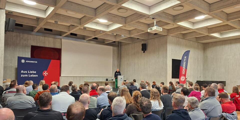 Im Mittelpunkt standen dabei die Fragen, wie die Resilienz weiter verbessert und die Ausbildung im Ehrenamt gezielt gefördert werden kann. Auch aktuelle Herausforderungen wie Stromausfälle und Krisenszenarien standen im Fokus. Oberstleutnant Andreas Kornmaier von der Bundeswehrakademie Deutschland zeigte auf, welche wichtige Rolle die Johanniter im Krisenfall übernehmen – von unterstützenden Maßnahmen für die Bevölkerung bis zu Sanitätseinsätzen.