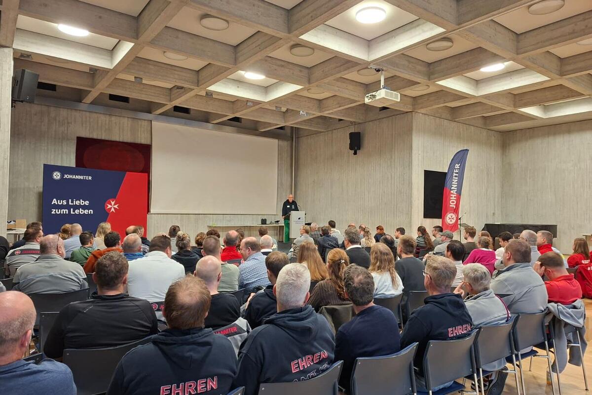 Ein besonderer Moment: die Begrüßung neuer ehrenamtlicher Führungskräfte, die Verleihung des Ehrenzeichens des Johanniter-Landesverbandes Baden-Württemberg sowie die Verleihung des Ehrenamtspreises 2025: