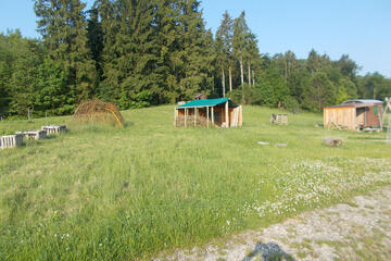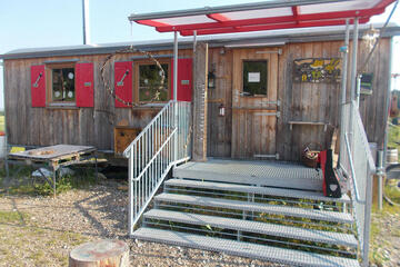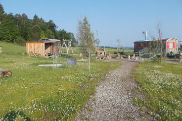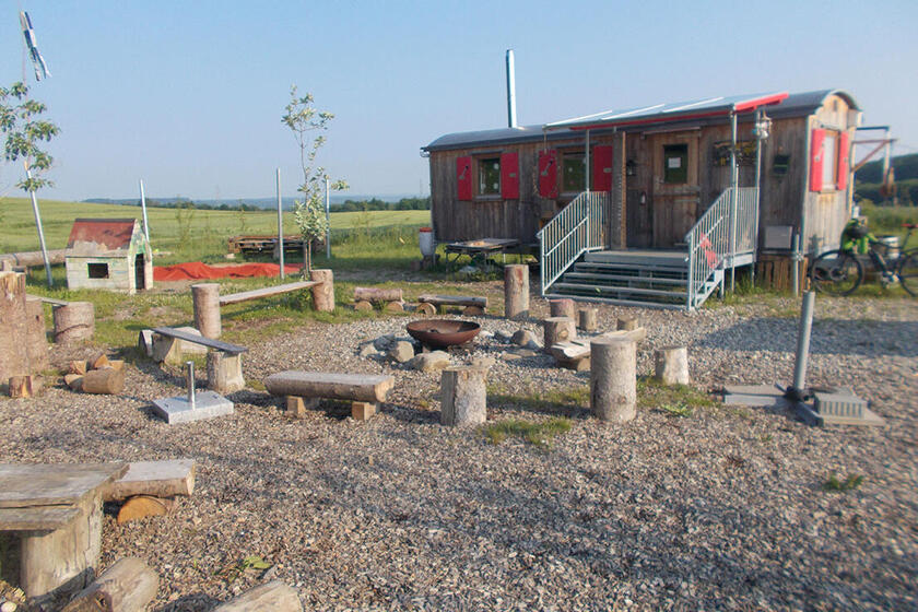 Die Gruppe hat einen eigenen beheizbaren und gemütlich eingerichteten Bauwagen. Die Wege rund um den Standort sind leicht begehbar und sind mit dem Fahrrad gut zu erreichen. Fußläufig entfernt steht ein Elternparkplatz zur Verfügung. Ein Ausweichraum für besondere Witterungsbedingungen findet die Kita in der Buchbühlhalle.