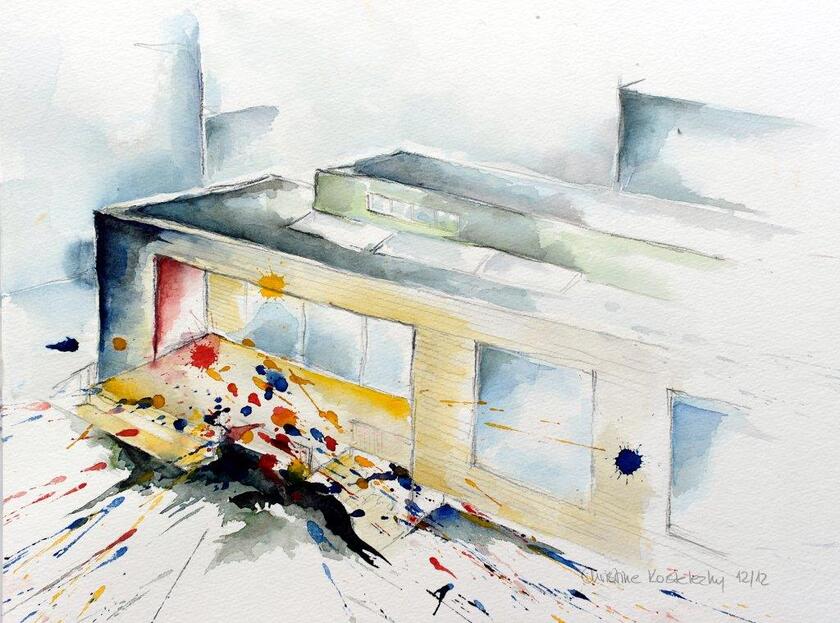 - im Malatelier erste Erfahrungen mit Farbe, Schere, Papier erwerben