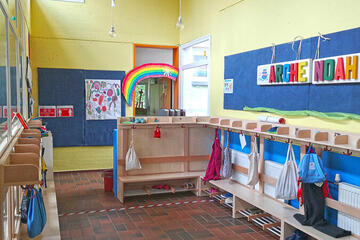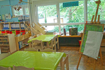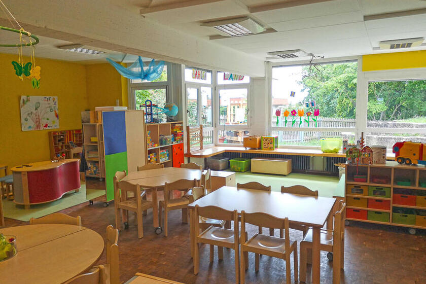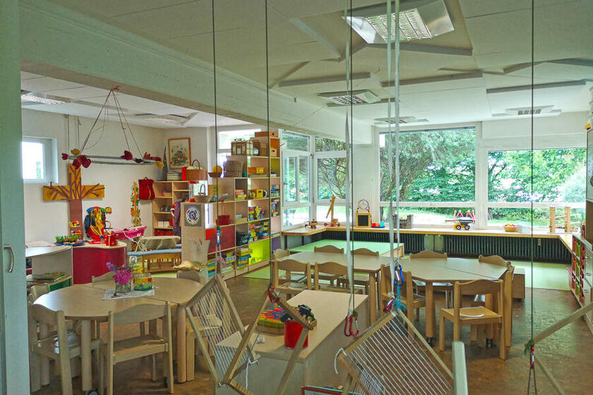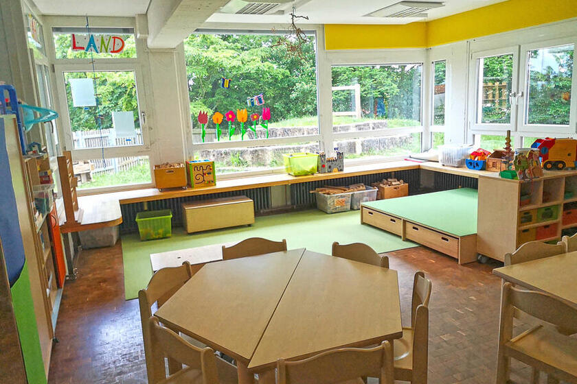 - Der Kindergarten besteht aus zwei Gruppen zu je 25 Kindern im Alter von 3 bis 6 Jahren