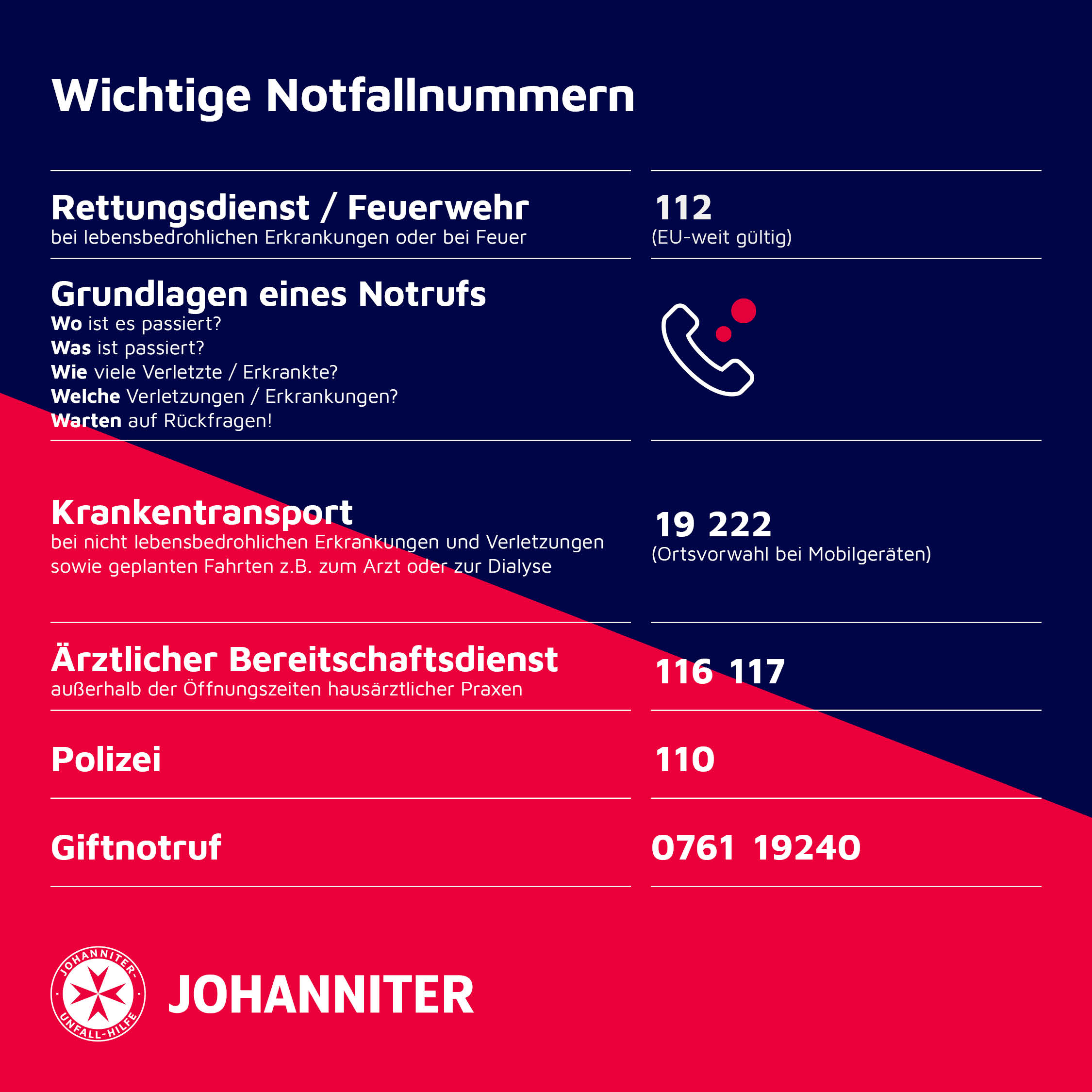 Im Notfall wählen Sie die 112