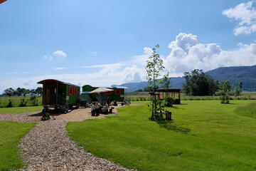 Jede Gruppe hat einen eigenen beheizbaren und gemütlich eingerichteten Bauwagen. Die Wege rund um den Standort sind leicht begehbar und auch mit dem (Elektro-)Fahrrad gut zu erreichen. Fußläufig entfernt stehen Elternparkplätze zur Verfügung. Als Ausweichraum für besondere Witterungsbedingungen können die Waldkinder einen Raum in näherer Umgebung nutzen.