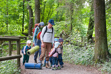 Wir brechen auf zu unseren Entdeckungsreisen. Wir berücksichtigen die Tagesform und die Möglichkeiten der jeweiligen Jahreszeit. Unterwegs machen wir Kreisspiele, entdecken Pflanzen, Tiere und den Wald, spielen kleine Rollenspiele, betrachten Bücher und erfinden dazu neue Geschichten…. In dieser Zeit essen wir unser mitgebrachtes Vesper - bei schönem Wetter unterwegs auf einer Isomatte, im Winter und bei schlechtem Wetter im Bauwagen. Für den Rückweg planen wir genug Zeit ein, damit wir pünktlich bei unserem Treffpunkt sind.