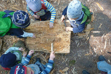 Die Waldspielgruppen bieten den Familien ein erstes Kennenlernen des Waldes und viele entscheiden sich aufgrund der positiven Erfahrungen im Anschluss für den Waldkindergarten.