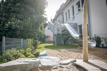 - In der Krippe befinden sich Fühlwände für die Kleinsten. Diese regen an, sich aufzurichten, zu erkunden und die Welt auf beiden Beinen und haptisch zu erforschen.
