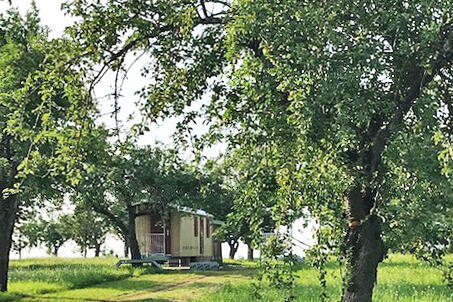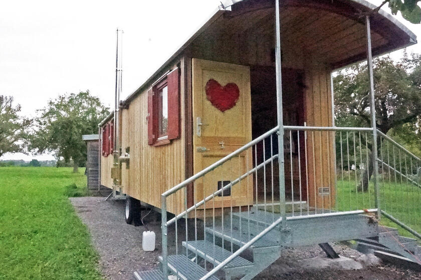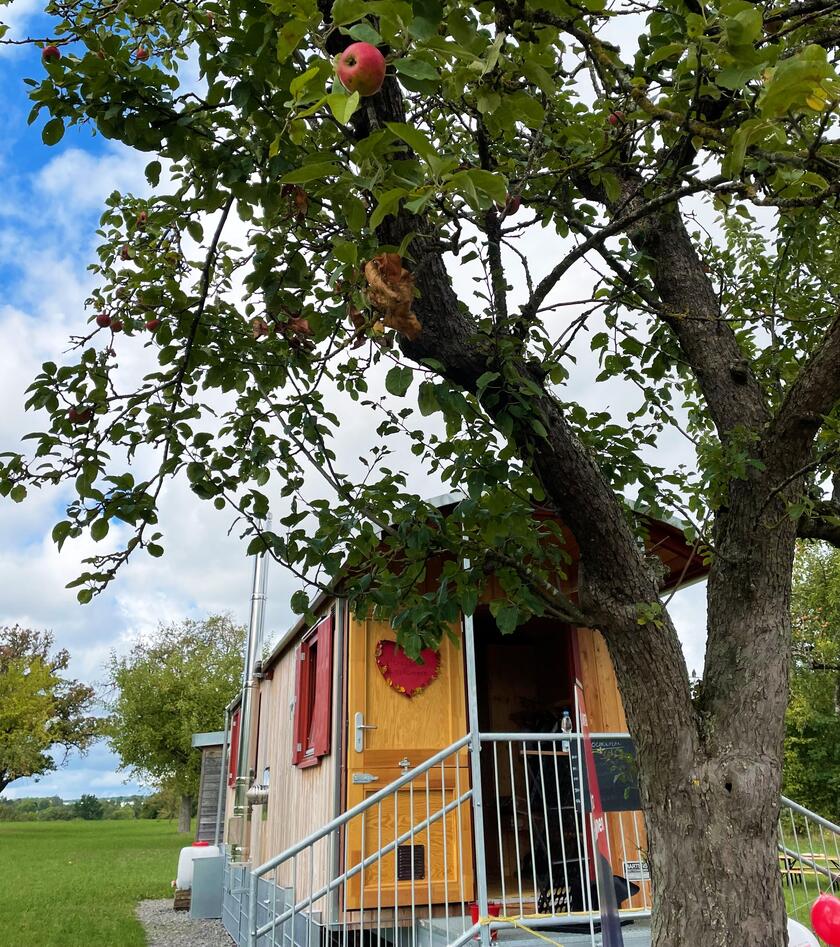 Der Bauwagen unserer Naturkita steht auf den Streuobstwiesen beim Neuen Friedhof (Olgastraße)