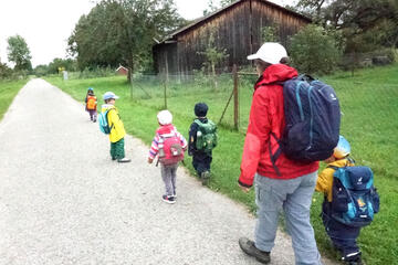 Unsere Kinder sind überwiegend draußen unterwegs und erforschen spielerisch Wälder, Wiesen und Felder. Ihre Spielgeräte finden die Kleinen in der Natur und haben damit unzählige Möglichkeiten, sich frei zu entfalten. Zwischendurch können sie in ihrem Kita-Bauwagen einen kurzen Zwischenstopp einlegen, bevor es wieder zu neuen Freiluft-Abenteuern geht.