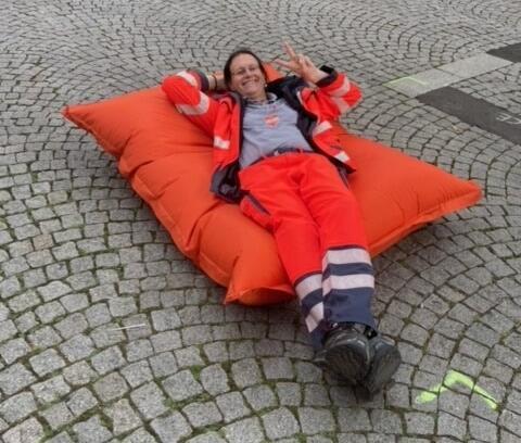 Zu Beginn des Kurses in der Versicherung war ihr Versprechen: "In Zukunft könnt Ihr sagen, ich war bei der Helga im Kurs, mir kann nichts passieren, ich geb' Gas beim Helfen." Und da sind die Mitarbeitenden am Ende des Tages alle zuversichtlich. Die Rückmeldungen für den Kurs sind alle sehr positiv. Ein Teilnehmer schreibt am Abend dem Betriebsärztlichen Dienst: "Ich bin begeistert von Inhalt, Aufbau, Methodeneinsatz und der Kursleiterin Helga selbst. Selten habe ich einfacher und informativer gelernt und geübt."