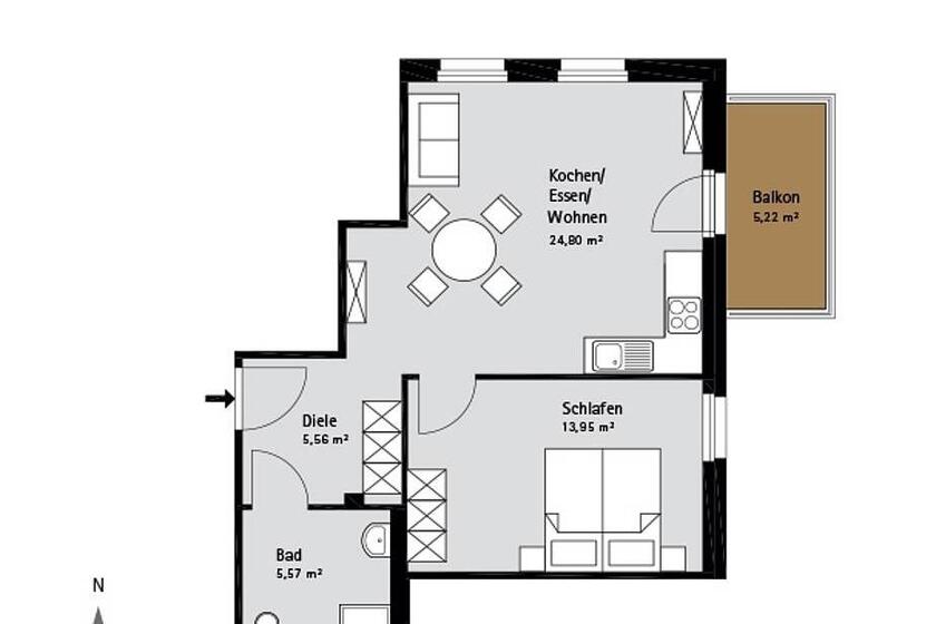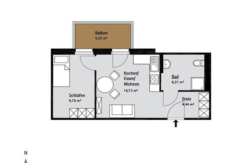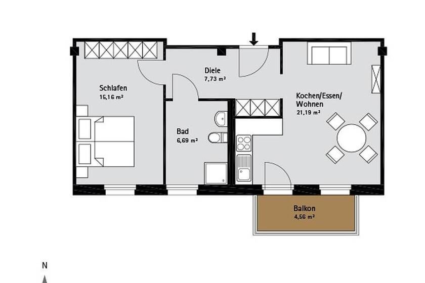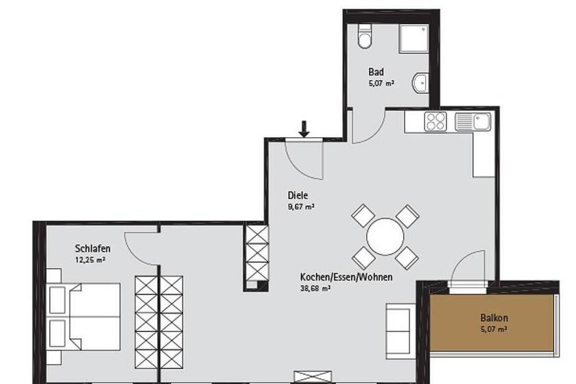 - Wohnfläche zwischen 37 und 68 Quadratmeter