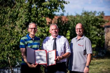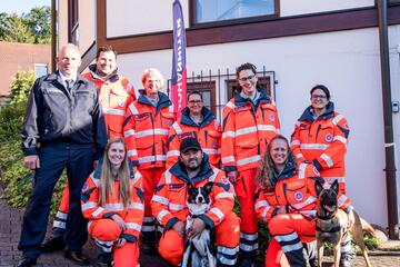Mitte Juli wurde im feierlichen Rahmen die neue Rettungshundestaffel Stuttgart-Enzkreis in Maulbronn gegründet. Die beiden Regionalvorstände Heiko Hauser und Yves-Patrick Wörner ernannten ebenfalls in diesem Rahmen Markus Kandler zum Staffelleiter. Markus Kandler ist bereits seit 2001 ein ehrenamtliches Mitglied der Johanniter und leitete bisher erfolgreich die Historiengruppe in Stuttgart. Vor 22 Jahren kam Markus Kandler über die Rettungshundearbeit zu den Johannitern. Er war damals in der in Böblingen ansässigen Rettungshundestaffel stellvertretener Staffelleiter bis er sich ganz der Aufgabe des Ortsbeauftragen und Leiter der Historiengruppe widmete und die Rettungshundearbeit ruhte. „Such und Hilf lautet das wichtigste Signal in der Rettungshundearbeit. Wir und unsere Hunde werden gerufen, wenn demente Personen sich verirren, Kinder vermisst werden oder Wanderer verunglücken, bis es aber soweit ist, wird noch etwas Zeit ins Land gehen“, berichtet Kandler. Seit 1998 ist er Hundebesitzer und hatte früher zwei Deutsche Schäferhündinnen und aktuell einen Holländischen Schäferhundrüden. „Wir freuen uns sehr, eine neue Rettungshundestaffel im Enzkreis aufzubauen. All unsere Mitglieder sind schon fleißig am Trainieren und Prüfungen ablegen, damit wir einsatzfähig werden und im Notfall schnelle Hilfe leisten können“, so Kandler weiter. Die Staffel besteht aktuell aus neun Helfern und fünf in Ausbildung befindlichen Hunden.