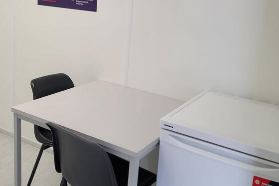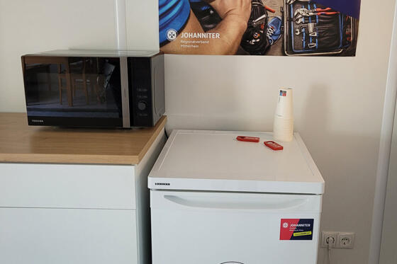 Um den Aufenthalt für Handwerker noch komfortabler zu gestalten, stehen im Gemeinschaftscontainer neben Getränke- und Snackautomat ab sofort eine Kombi-Mikrowelle, Wasserkocher sowie ein zusätzlicher Kühlschrank zur Verfügung.