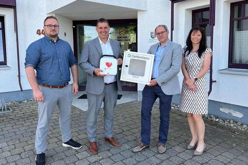 Johanniter übergeben zwei Defibrillatoren an die Stadt Hammersbach. Ein Defibrillator kann im Falle eines Herz-Kreislauf-Stillstandes Leben retten.