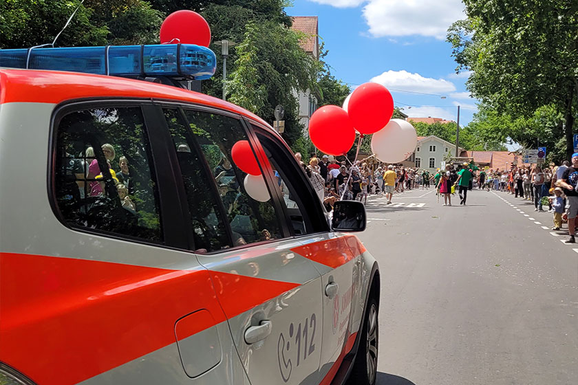 Mit zwei Fahrzeugen aus Rettungsdienst und Katastrophenschutz und dem Johanniter-Boot auf einem Anhänger war die Johanniter-Jugend mitten drin im Umzug. Zusammen verteilten die Jugendlichen neben guter Stimmung auch Informationen zur neuen Jugendgruppe ab 6 Jahren und den Schulsanitätsdiensten in Speyer und Umgebung. Immer wieder gewinnt das Ehrenamt in Speyer so neue Mitglieder, die sich mit dem Erlernten aktiv in die Gesellschaft einbringen.