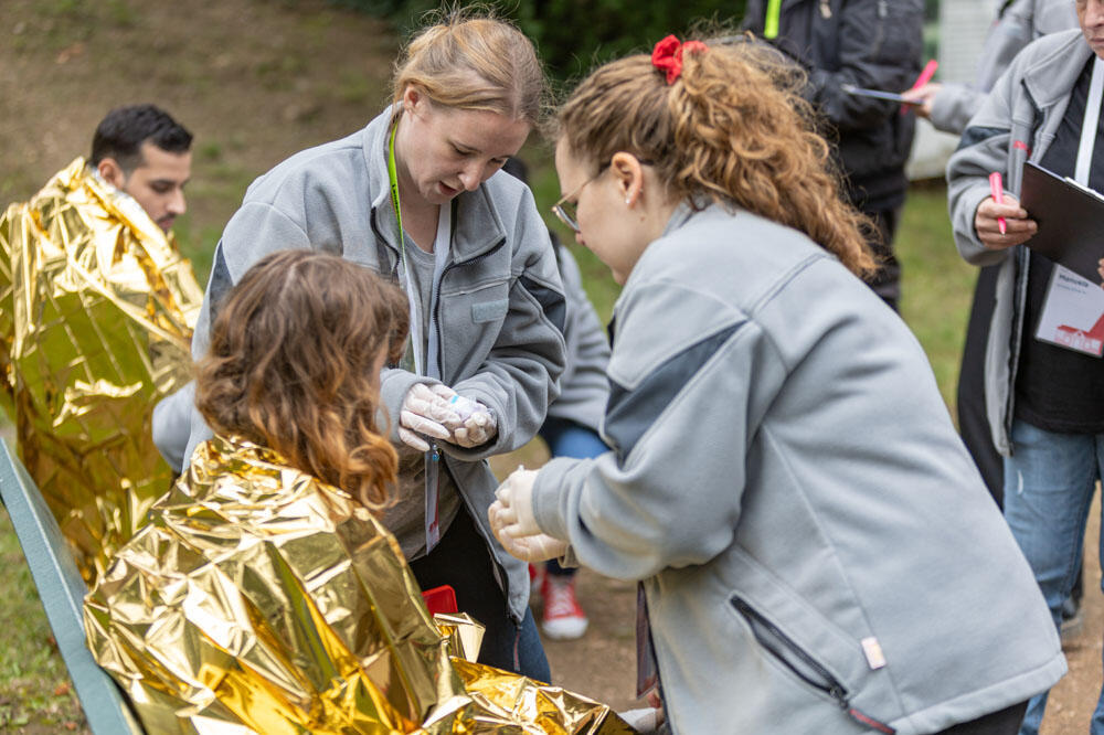 Auch aus dem Präsidium hatten wir Vertreter zu Gast, als Leiter des Schiedsgerichtes den Vizepräsidenten der JUH und Landesarzt unseres Landesverbands, Prof Dr. Simon Little; Dr. Oliver Seligmann, der sich als Schiedsrichter engagiert hat, und als Gast Klaus Preuß, ehrenamtlicher Regionalvorstand in Darmstadt-Dieburg.