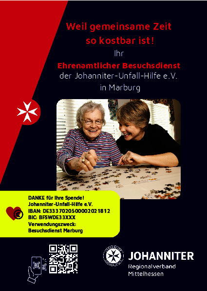 Marburg ▪ Der Besuchsdienst der Johanniter in Marburg hat es sich zur Aufgabe gemacht, der Einsamkeit vieler älterer oder hilfebedürftiger Menschen entgegenzuwirken und all jenen, die sich einsam fühlen, neue Möglichkeiten aufzuzeigen, um mit ihren Mitmenschen in Kontakt zu treten und so weiter am sozialen Miteinander teilhaben zu können.