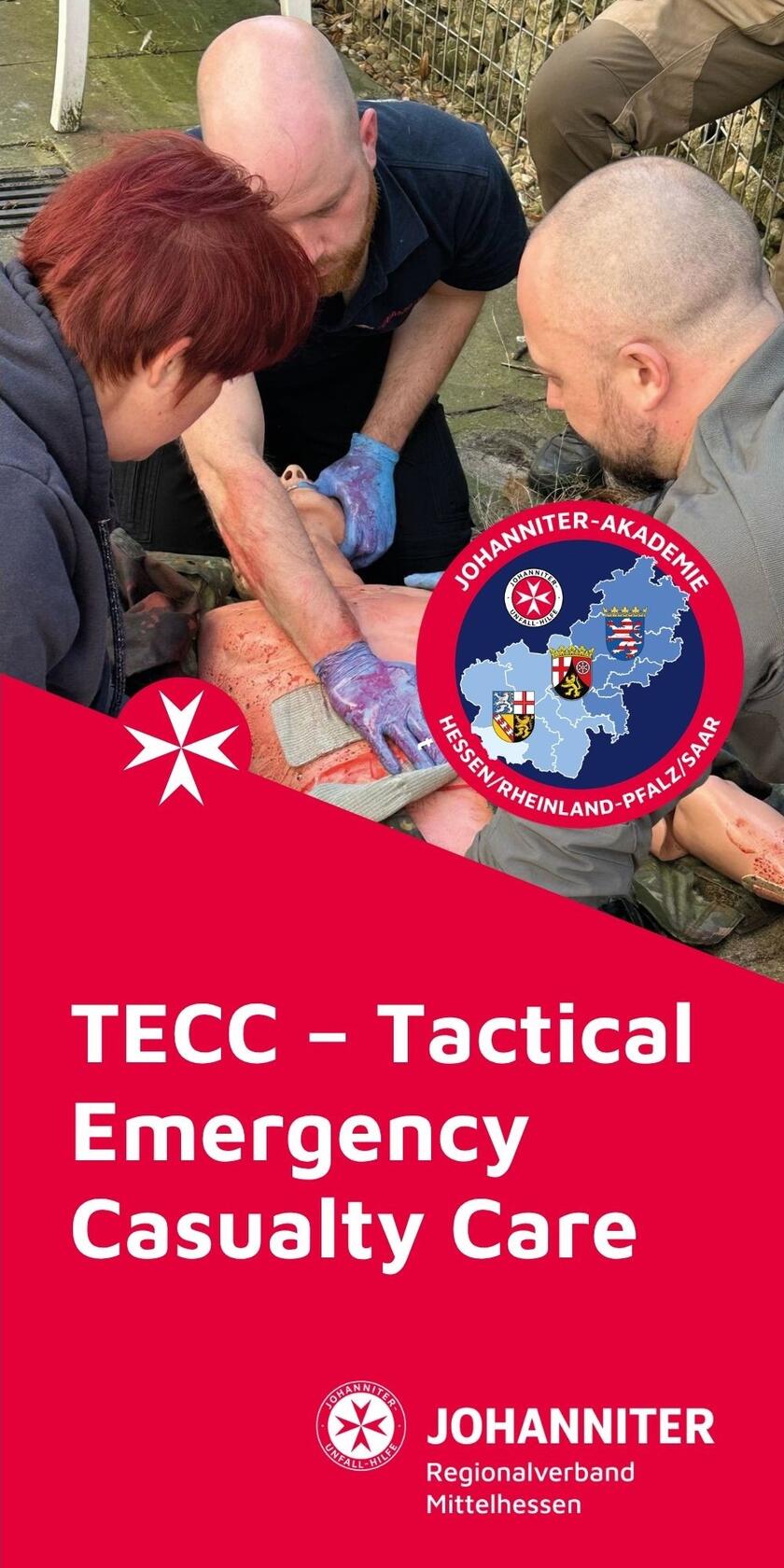 Der TECC-Provider-Lehrgang nach den Vorgaben des Committee for Tactical Emergency Casualty Care vermittelt praxisnahes Wissen und einsatzrelevante Kompetenzen für taktische Notlagen. Teilnehmende trainieren in realitätsnahen Szenarien, wie sie bei Terroranschlägen, Amoklagen oder einem Massenanfall von Verletzten schnell, sicher und effektiv lebensrettende Maßnahmen durchführen. Der Fokus liegt auf der Erstversorgung von Traumaopfern unter erschwerten Bedingungen sowie auf der Koordination und Kommunikation im Einsatz.