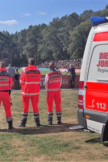 Wenn bei einer Groß- oder Sportveranstaltung etwas passiert, sind die Johanniter vor Ort und leisten erste medizinische Hilfe, auch in unwegsamem Gelände.