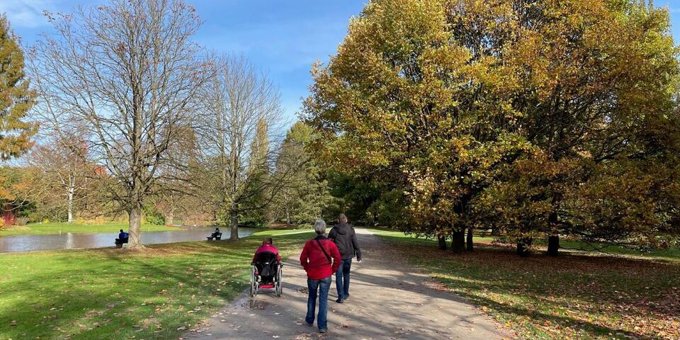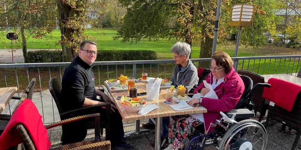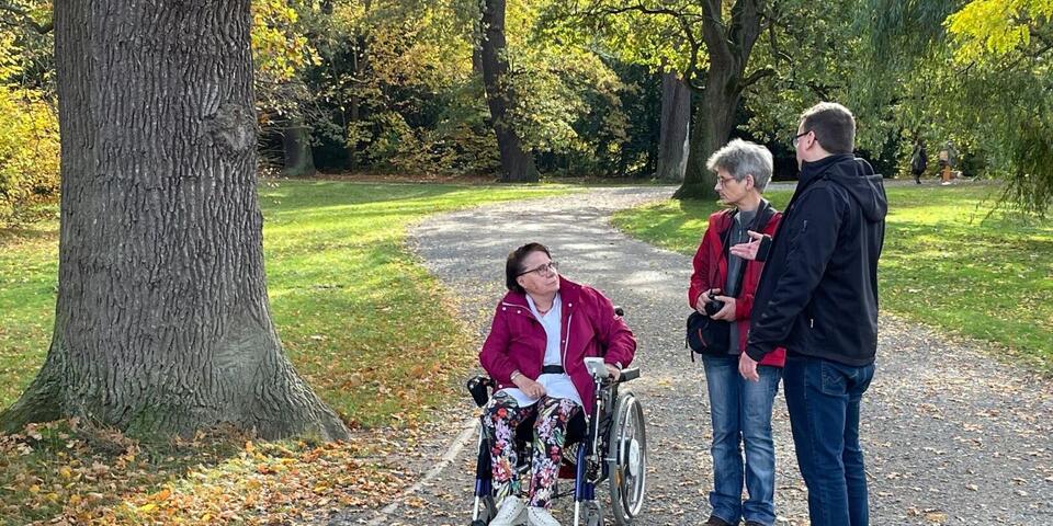 Durch Besuchsdienst-Koordinatorin Lydia Junk auf diesen Wunsch aufmerksam geworden, machte sich Fahrdienstleiter Michael Jaschke vom Regionalverband Mittelhessen der Johanniter-Unfall-Hilfe e.V. ausnahmsweise mit einem rollstuhlgeeigneten Kleinbus aus der Fahrzeugflotte auf den Weg nach Cölbe-Schönstadt, um dort die beiden Damen abzuholen und gemeinsam einen schönen Tag in Kassel zu verbringen. Bei bestem Oktoberwetter und sage und schreibe 24 Grad erkundete man gemeinsam die malerische Karlsaue, deren alter Baumbestand ein herrlich herbstlich-buntes Bild abgab. Gemütlich spazierte bzw. rollte man durch die Staatsparkanlage bis zur Orangerie, genoss die herbstlich warme Stimmung, machte das eine oder andere Erinnerungsfoto und kehrte dann zum Mittagessen in eine Gaststätte mit Biergarten ein, wo man sich für den Heimweg stärkte.