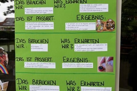 … widmete man sich in Kleingruppen diesem Thema, stellte kleine naturwissenschaftliche Versuchsreihen an und nahm Themen wie Licht, Magnetismus, was schwimmt auf dem Wasser, welche Gegenstände gehen unter und vieles mehr etwas genauer unter die Lupe.
