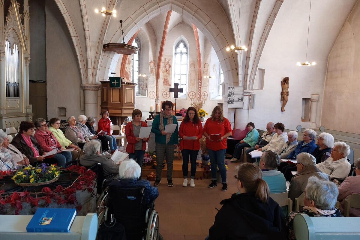 Es ist schon eine kleine Tradition geworden, dass die Tagespflegegäste mit dem Team nach dem Erntedanksonntag die Kirche besuchen dürfen: Auf Einladung von Frau Wagenbach konnte dort nochmal die schöne Dekoration der Busecker Landfrauen bewundert werden und es gab für alle die Möglichkeit, eine Stunde innezuhalten. Die Mitarbeiterinnen der Tagespflege haben eine kleine Andacht vorbereitet - musikalisch wurde dies wieder mit der Querflöte begleitet, dazu gab es besinnliche Zeilen, gemeinsame Lieder und Gebete. Alle haben den kleinen Ausflug genossen!