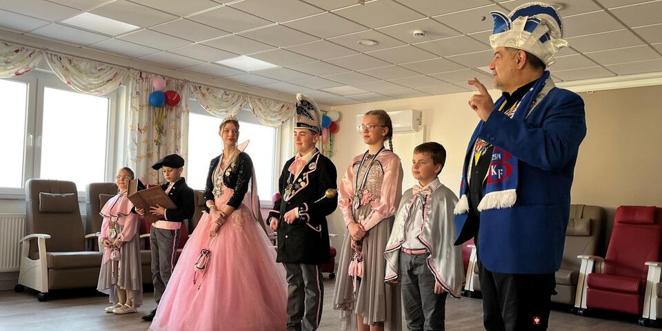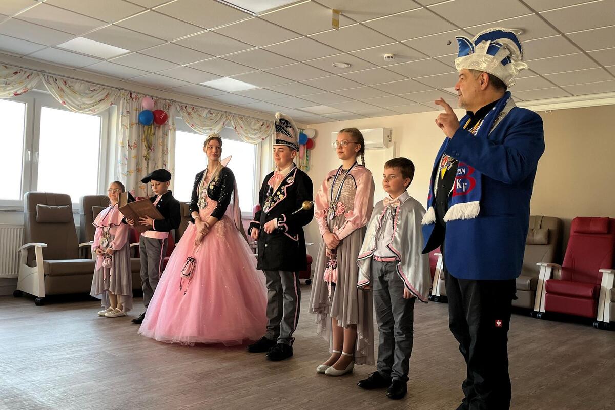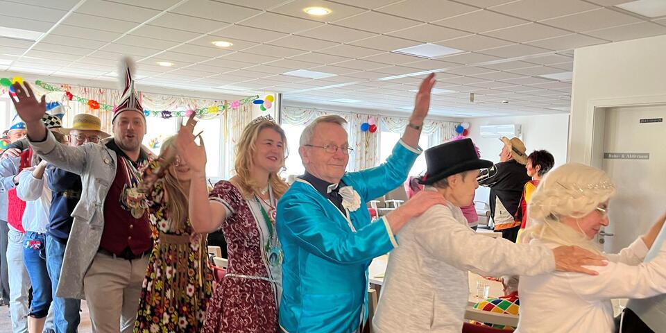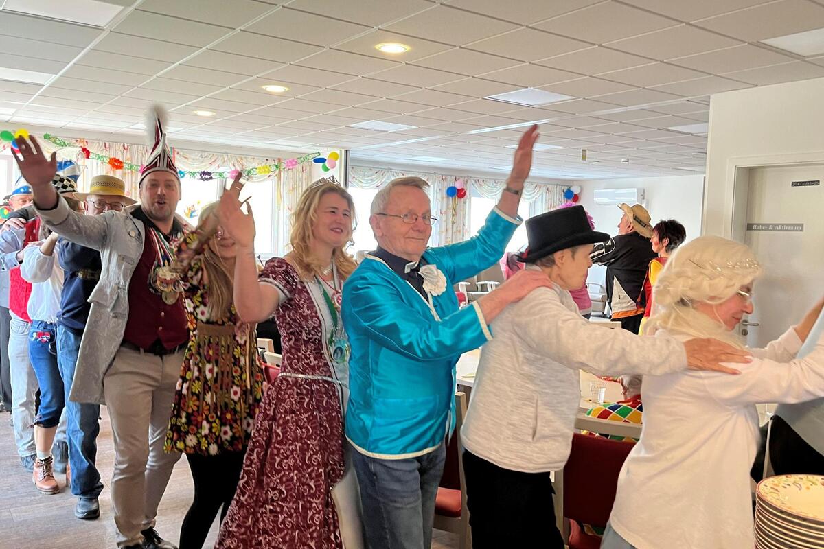 Am Faschingsdienstag hatten wir die besondere Freude, eine Faschingsprinzessin aus der eigenen Mitarbeiterschaft zu Besuch zu haben: Pflegehilfskraft Nadine als Prinzessin mal in ganz anderer Rolle mit Hofnarr und Gefolge! Alle Gäste bewunderten Nadine sehr, die in ihrem wunderschönen Kleid kaum wiederzuerkennen war. Der Hofnarr unterhielt uns mit lustigen Reden und vielen Sprüchen. Alle Gäste waren dann mit dem Prinzenpaar zur Polonaise unterwegs und tanzten auch mit ihnen zusammen.
