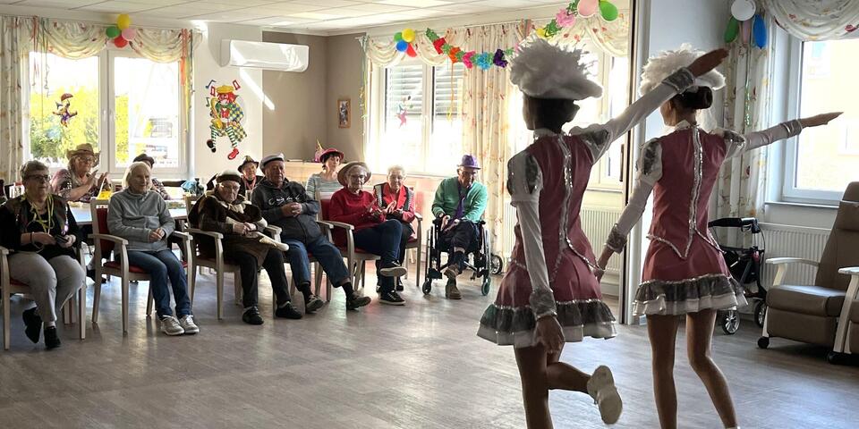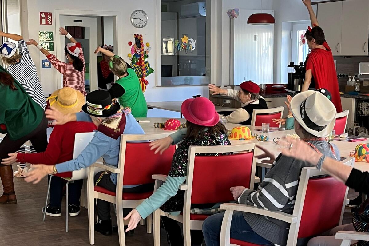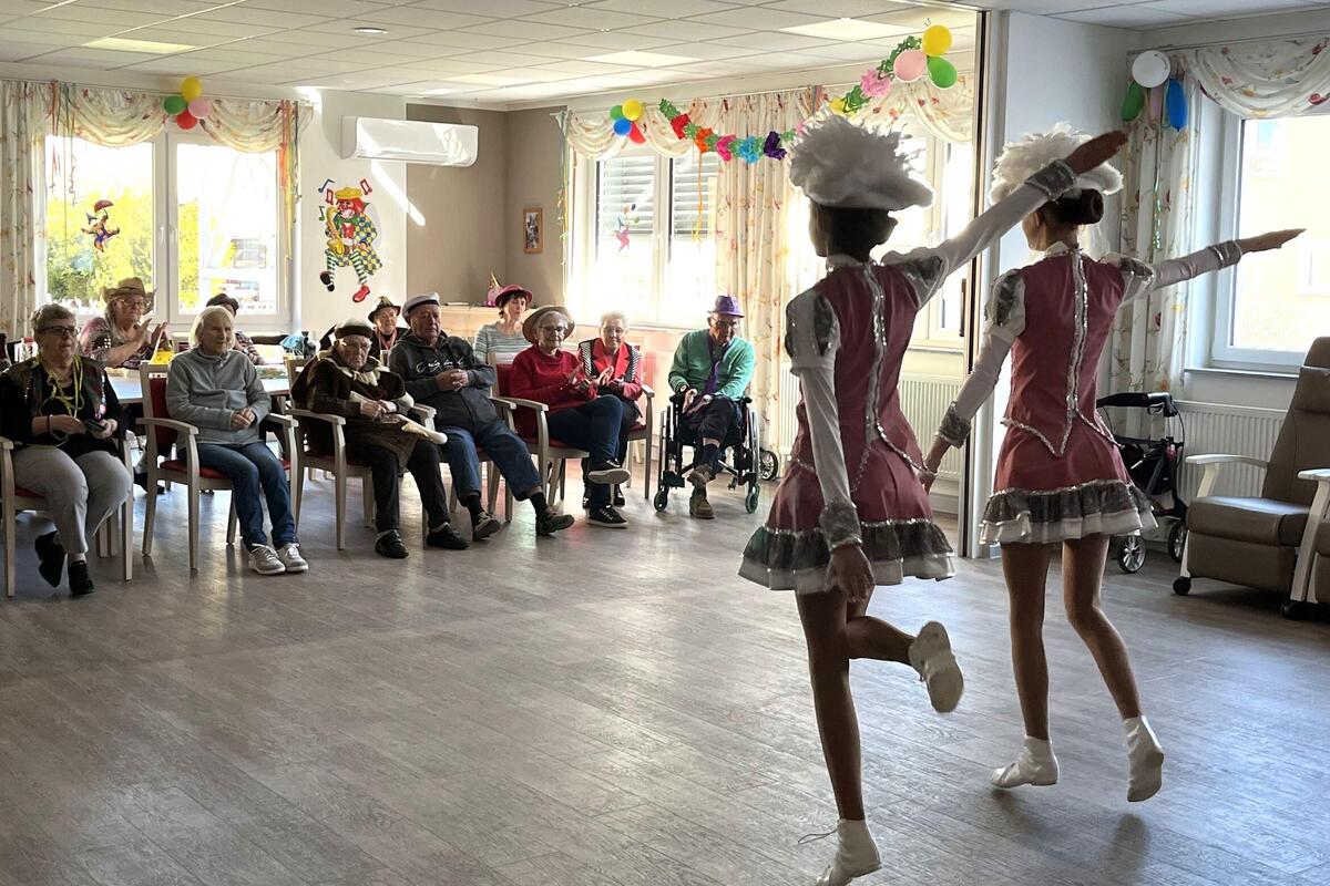 Am Nachmittag besuchte uns der Busecker Karnevalsverein mit den „Minis“. Es waren in Summe 21 Mädchen, die mit sehr schönen Kostümen für uns einliefen und ihren Tanz mit Zugabe vorführten. Die Gäste klatschen begeistert mit. Es war ein toller Tag mit vielen Schunkelliedern, aktiven Mitmachliedern inklusive einer Polonaise durch die gesamte Tagespflege. Auch fürs leibliche Wohl war bestens gesorgt mit Kräppeln, selbstgemachtem Popcorn und auch ein Sektchen wurde mit Wonne genossen.