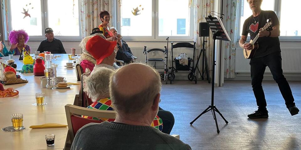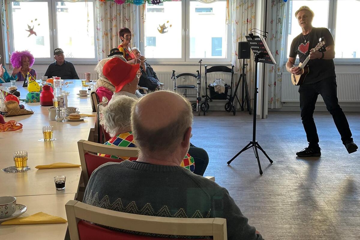 Am Nachmittag trat Liedermacher Martin Pfeiffer mit vielen alten Schlagern und seiner Gitarre bei uns auf. Er war vor Weihnachten schon mal bei uns und da alle so begeistert waren, hatte er uns auch für den Faschingsdienstag nochmal zugesagt.
