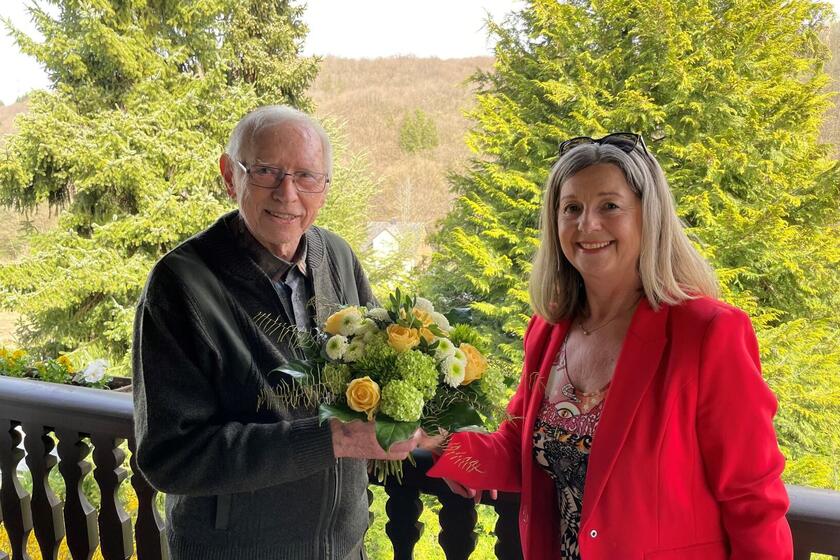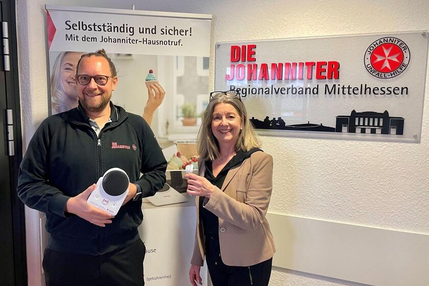 Der 4000. Kunde, Gerhard H., der sich nun über eine kleine Überraschung freuen darf, kommt aus dem Lahn-Dill-Kreis, wo die Johanniter im Oktober 2021 ihr neues Hausnotruf-Beratungsbüro in Ehringshausen eröffnet und damit ihre Notrufdienste-Präsenz in Mittelhessen um einen zentralen Beratungsstandort im Lahn-Dill-Kreis erweitert haben.