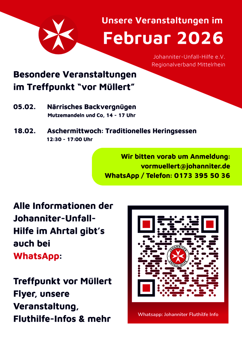 Ein Leuchtturmprojekt für die gesamte Region: der Mehrgenerationentreff auf dem ehemaligen Sportgelände Dernau. Hier haben die Johanniter das von der Flut zerstörte Sportlerheim zu einer Jugend- und Begegnungsstätte ausgebaut. Die Räume beherbergen Veranstaltungen und soziale Projekte, darunter unter anderem ein Jugendtreff, Betreuungsmöglichkeiten für Kinder, ein Seniorencafé sowie vielfältige generationsübergreifende Angebote.