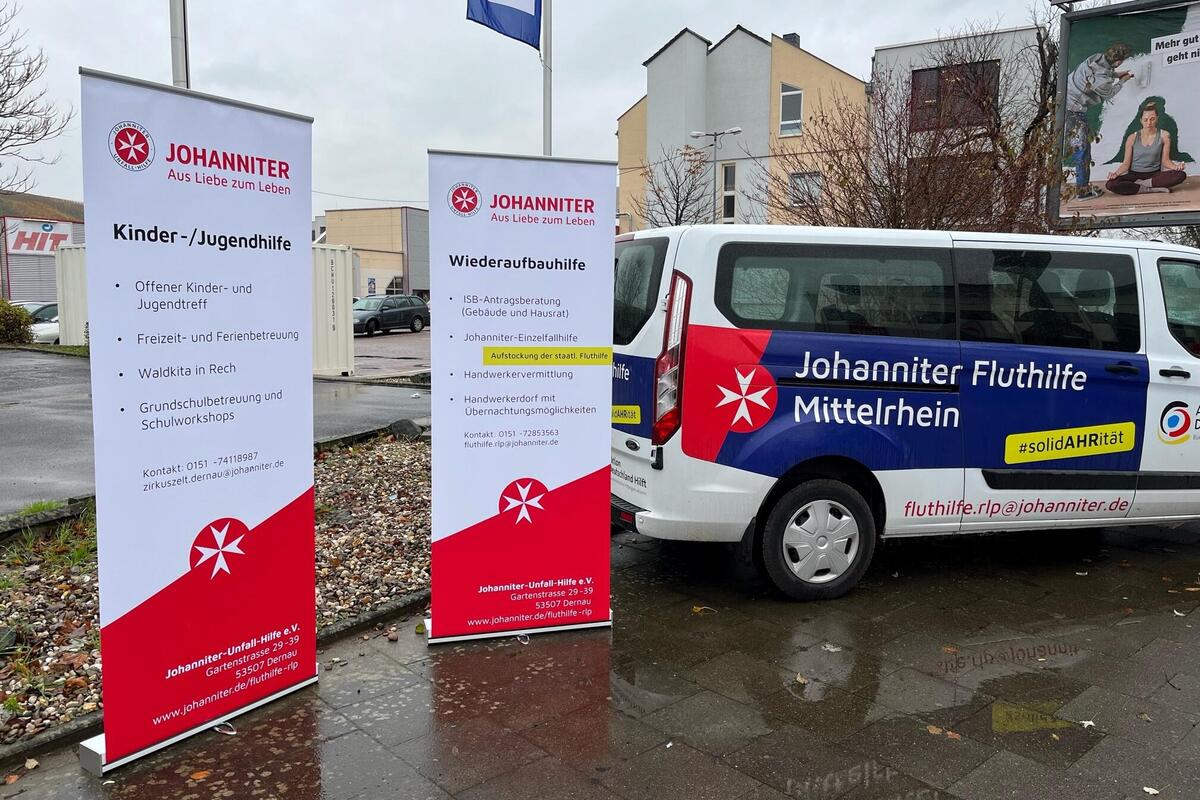 Die Johanniter Infobustour geht auch in 2023 weiter! Ab Februar wird unser Fluthilfe-Team wieder regelmäßig mit dem mobilen Infostand in Ahrweiler, Walporzheim – und neu: in Bad Neuenahr und Ahrbrück! – vertreten sein.