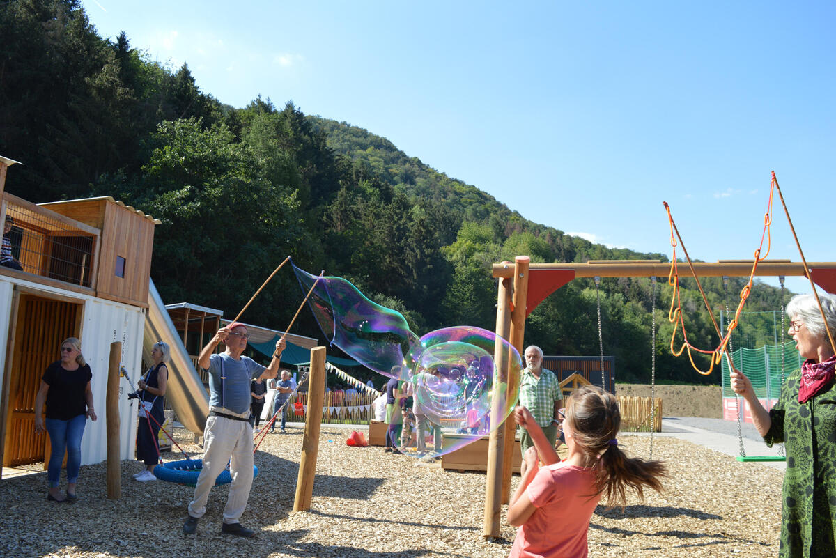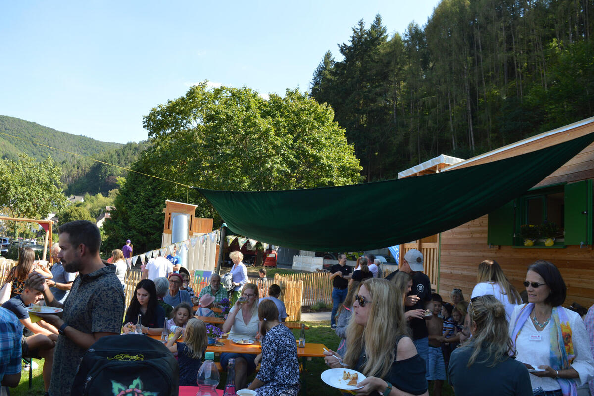Mit einem bunten Unterhaltungsprogramm und Gästen aus Politik, Wirtschaft und Verbänden sowie zahlreichen interessierten Familien fand am heutigen Freitag, 2. September 2022 die feierliche Eröffnung auf dem Kita-Gelände Burgwiese in Rech statt. Dort steht der Bauwagen, indem die Kinder künftig bei widrigen Wetterbedingungen Schutz finden und für die Zeiträume der Bring- und Abholzeiten nutzen. Ferner gehört ein Toilettencontainer mit zwei Toiletten zur Ausstattung des Geländes.