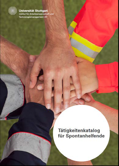 Mit dem Tätigkeitenkatalog werden mehrere Fragen beantwortet: Was ist zu tun? Eher soziale Tätigkeiten oder Tätigkeiten, bei denen Muskelkraft gefordert ist, Wer kann es tun? Die notwendigen Qualifikationen, das physische und psychische Leistungsvermögen sowie die Planungskennzahlen zur Planung des eigenen Aufwandes (Betreuungsverhältnis) und des Einsatzwertes der Spontanhelfendengruppe. Ergänzt wird der Katalog durch eine Checkliste, auf der die wichtigsten Punkte für die Einbindung aus Sicht der operativen Führungskraft und aus Sicht des Mitglieds eines Führungsstabes vermerkt sind.